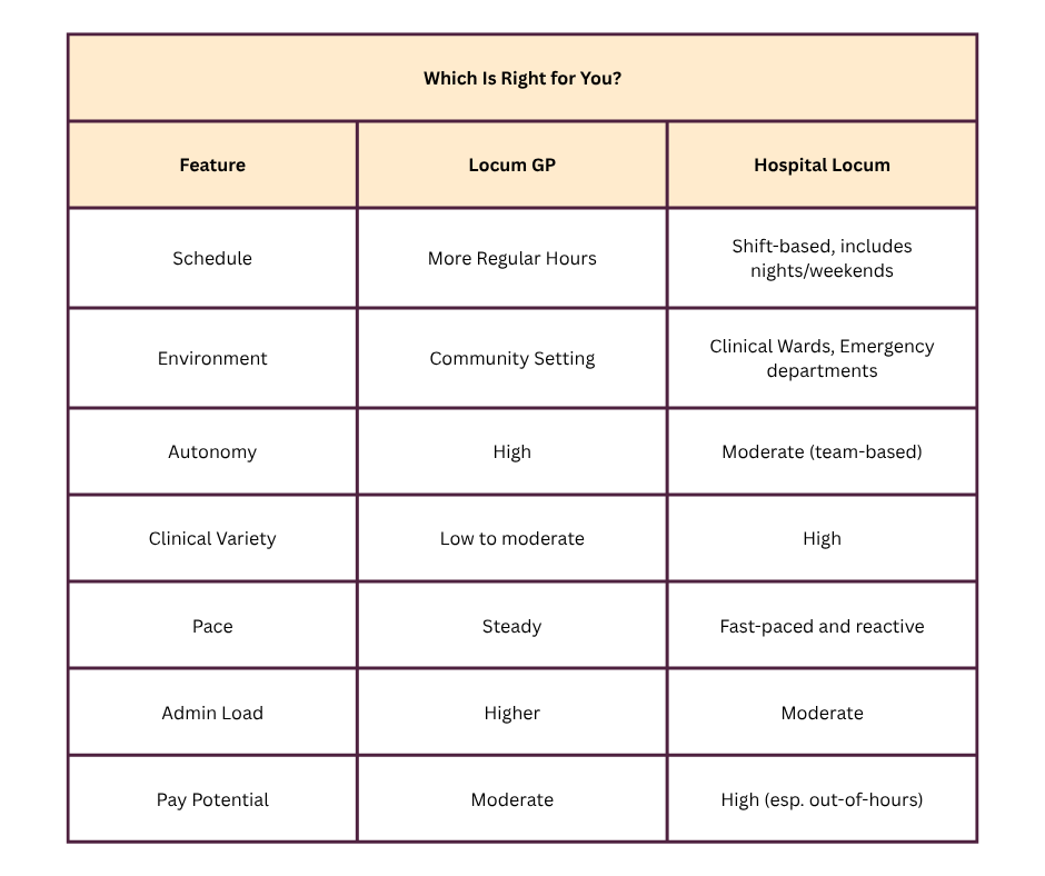 Both GP and hospital locum roles offer fantastic opportunities for flexibility, independence, and professional growth. Your choice might depend on your preferred work-life balance, clinical interests, or financial goals.